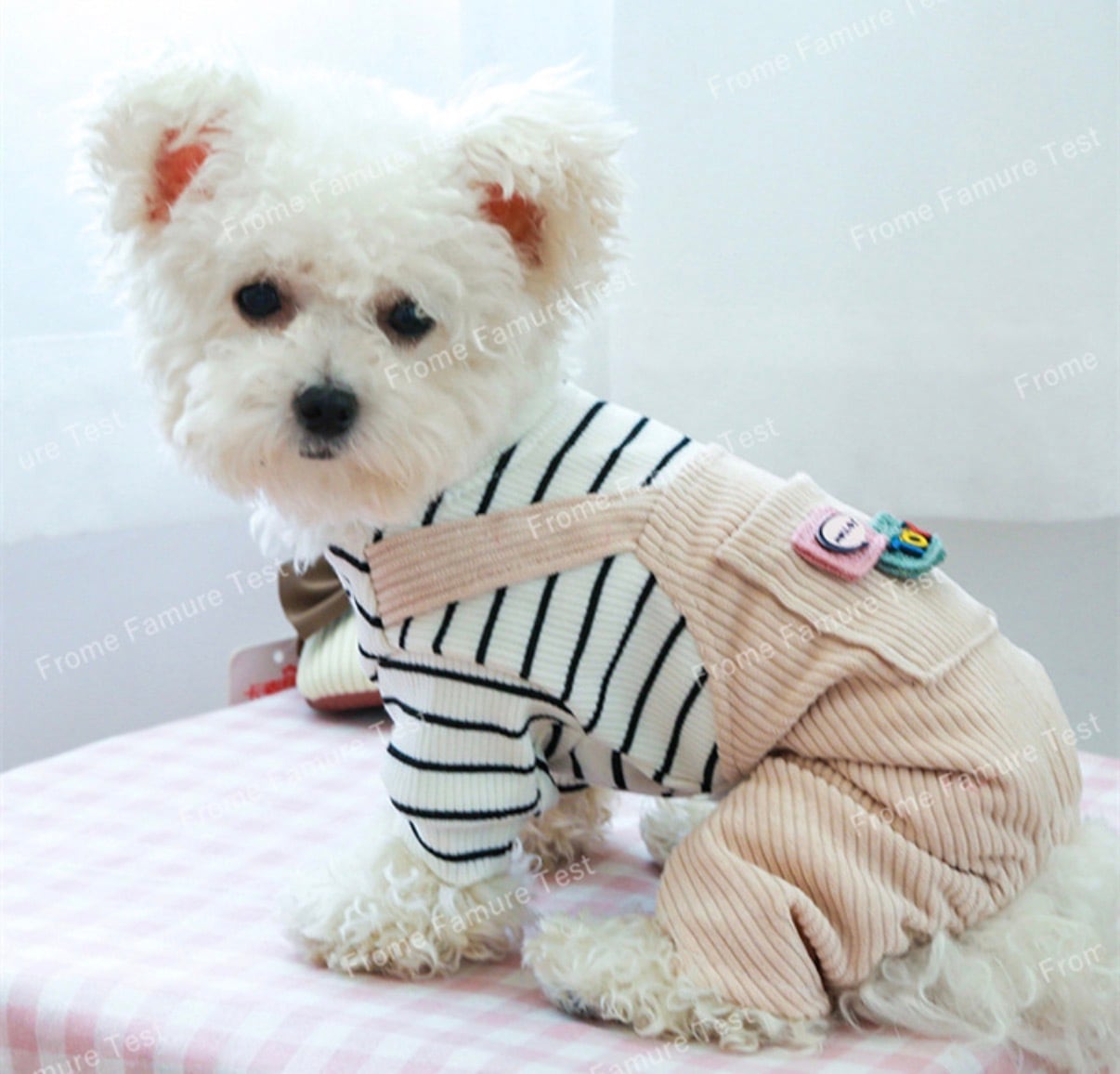 縦のラインが可愛いコーデュロイ風の生地ですが、触り心地は驚くほどさらさらと軽やかです。本物のコーデュロイのような厚みや重さがないため、わんちゃんの体への負担が少なく、これからの季節も涼やかに着ていただけます。